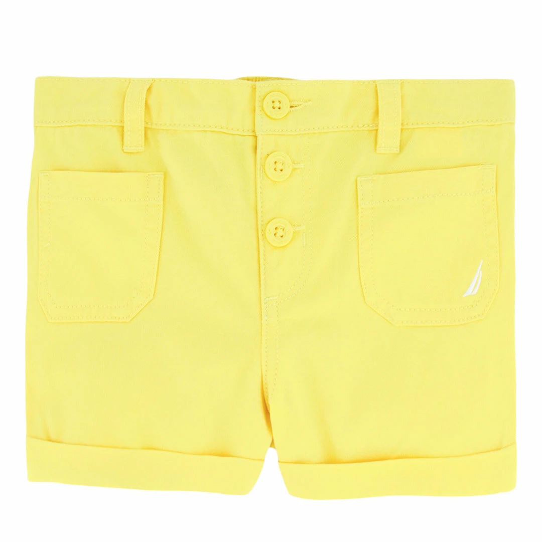 Featuring patch pockets and a decorative button-fly front, this comfy twill short is just right for your child’s sunny-day adventures. 100% cotton Patch pockets. Faux button fly. Rolled cuffs Belt loops. Back elastic waistband. Machine wash. Imported.