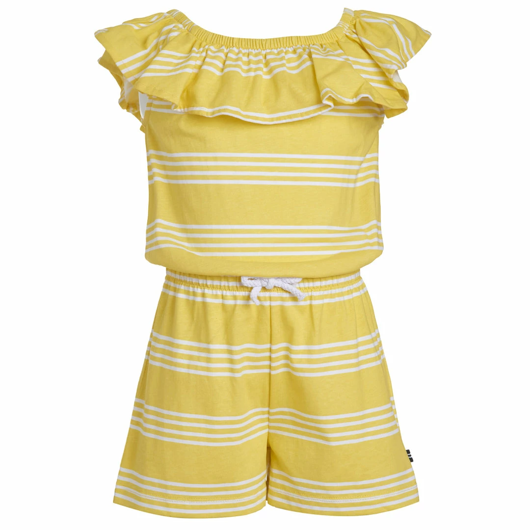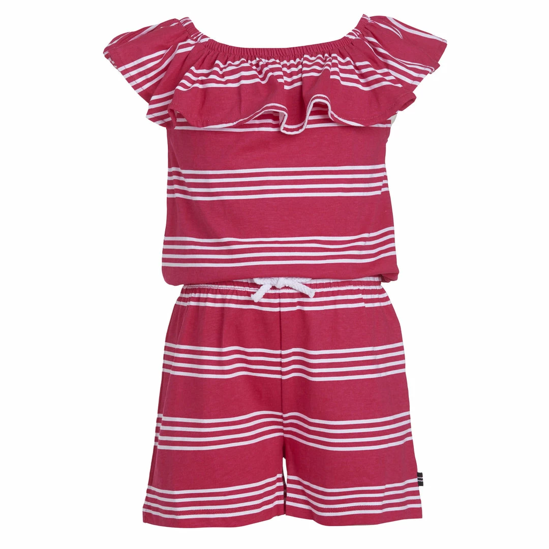 An all-around ruffled neckline highlights this sweet striped romper, featuring a cinched waist and relaxed fit in cute comfort. 100% cotton. Relaxed fit. Ruffle straps & neckline. Machine wash. Imported.