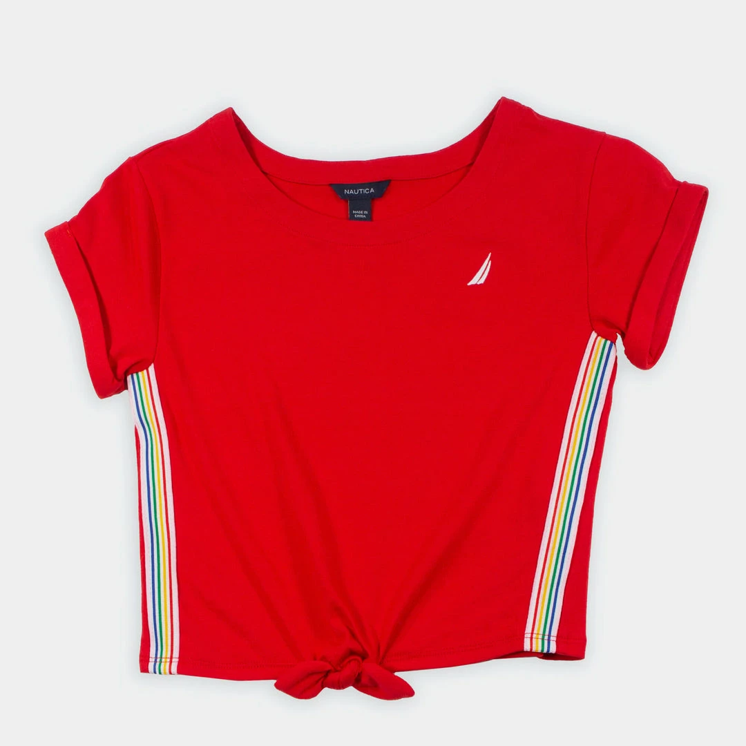 The tie-front detail highlights this playful cotton-jersey top. Featuring rainbow taping at the sides, this style is finished with rolled cuffs and our signature J-class logo. 60% cotton, 40% polyester Crewneck. J-class logo at chest. Short sleeves. Rolled cuffs. Self-ties at front hem. Machine wash. Imported.