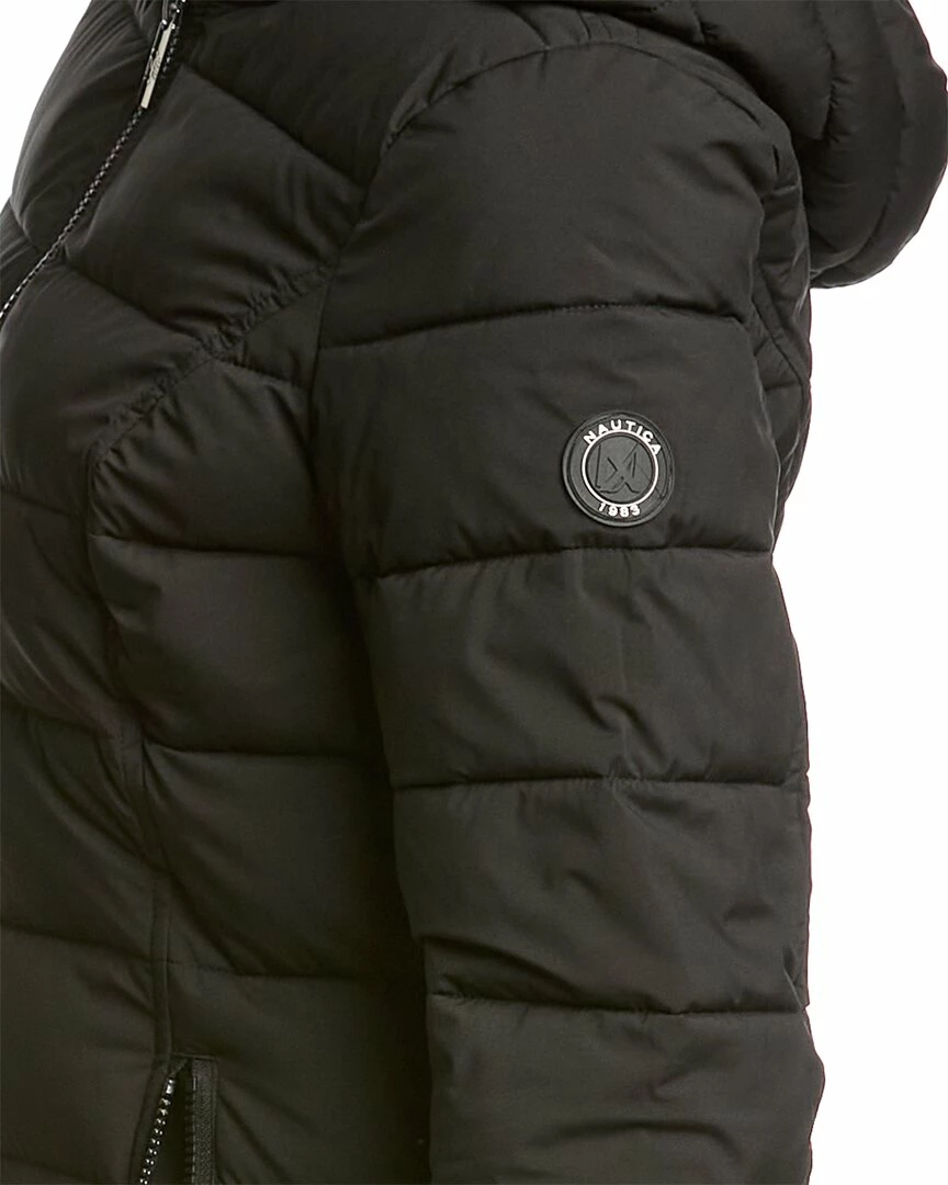 - Design Details – Quilted Puffer Style, Stand-Up Collar, Removable Hood, Dual Front Zipper Pockets, And Zippered Side Vents