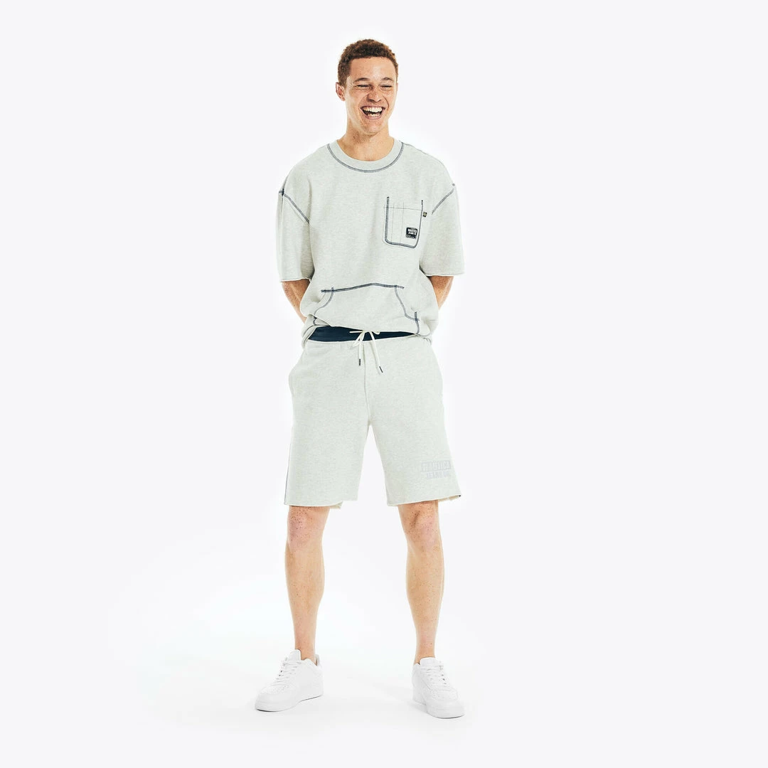 Designed with a comfortable elastic-drawstring waist, this sueded-fleece short from the Nautica Jeans Co. collection will be your go-to style whether you are going for a stroll or running errands. From the Nautica Jeans Co. collection. 55% cotton, 45% polyester. Elastic-drawstring waist. Side welt pockets. Back patch pocket. Logo at hem. 10″ inseam. Classic fit. Machine wash.
