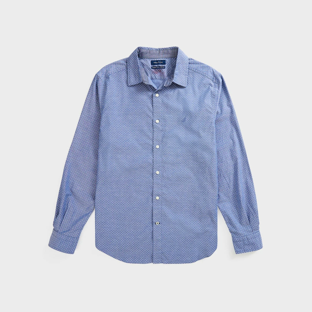 Showcasing a fun dot print, this classic-fit cotton oxford shirt is designed with a hint of stretch for all-day comfort and mobility. 98% cotton, 2% elastane Big & Tall. Classic fit. Buttoned collar. Button placket. Long sleeves. Button cuffs. Patch pocket at front. J-class logo at chest. Machine wash.
