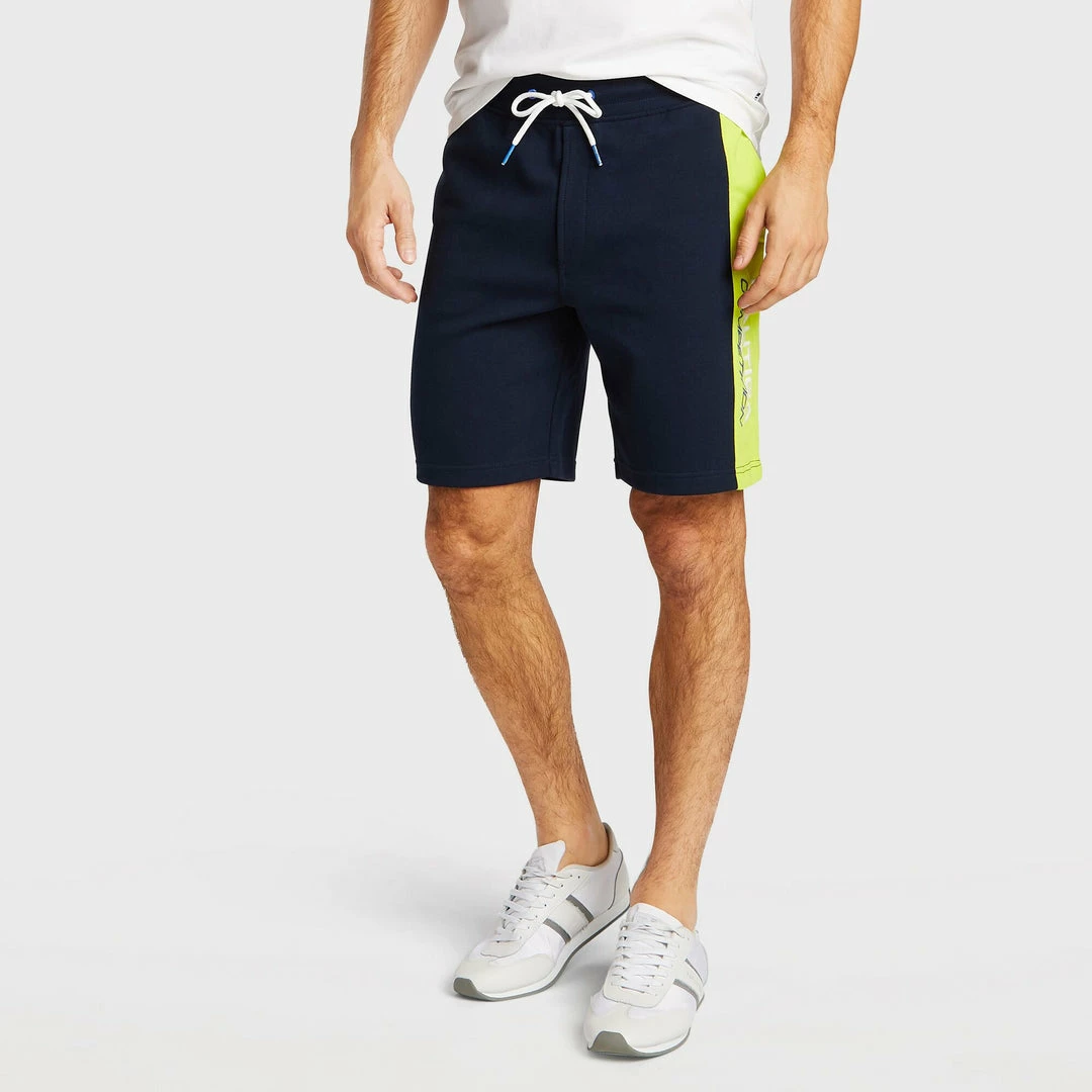 A substantial double knit adds structure and stretch to these quick-drying performance shorts offset by a pop of neon. Imported 67% cotton, 33% polyester Elastic-drawstring waist Side-seam pockets; back welt pocket Machine wash