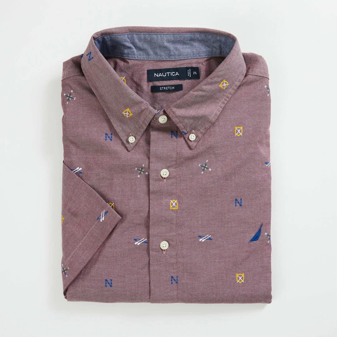 Stand out amongst the sea of solid shirts in this nautical icon print style. It’s made from soft stretch-cotton poplin with our signature J-class logo at the chest. 98% cotton, 2% elastane Big & Tall. Classic fit. Buttoned collar. Logo patch pocket at chest. Short sleeves. Button placket.