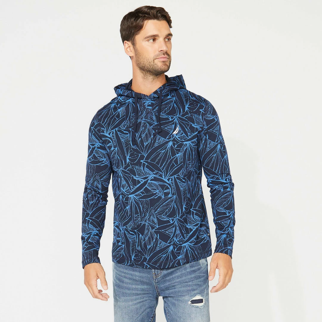 When the weather has a chill, you’ll need a little extra coverage to fight against the elements. This printed long sleeve hooded t-shirt crafted from soft cotton-jersey makes the perfect lightweight layer. 100% cotton Big & Tall. Classic fit. Drawstring hood. J-class logo at chest. Long sleeves. Ribbed cuffs. Pullover style.