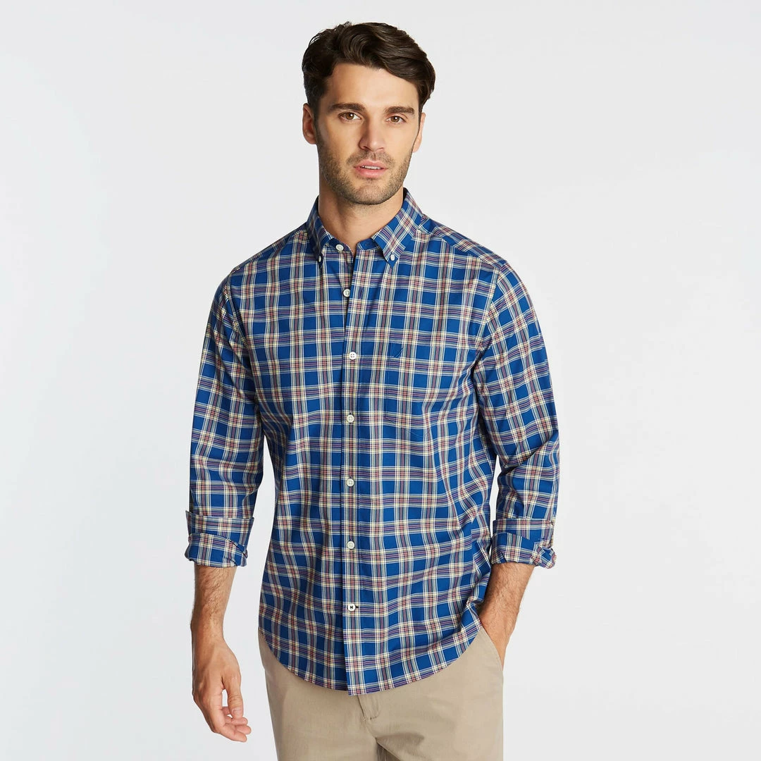 An easy, wear-anywhere style, this clean, crisp shirt will keep its shape from work until after dark, with wrinkle-resistant fabric to keep you dry and cool all day. Imported 98% COTTON, 2% ELASTANE Button down collar. Long sleeves with button closure. Machine wash.