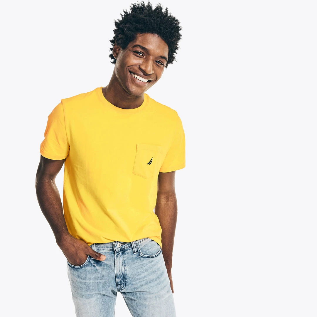 Accented with a logo patch pocket at the chest, this super-soft stretch cotton tee is the perfect layering piece that can be dressed up or down. 95% cotton, 5% elastane. Crew neck. Short sleeves. Patch pocket at chest. Classic fit. Machine wash. Imported.