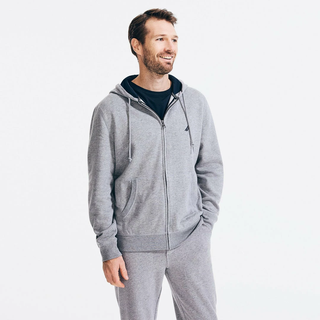 Equal parts athletic and laid-back, the big & tall hoodie is rendered here with zip-front styling and a J Class logo at the chest. It works equally well over a t-shirt to run errands or as a sporty counterpoint to a collared shirt. From Nautica. 55% Cotton, 45% Polyester Machine wash; Imported Fully zips up in front; hooded with drawstrings Long sleeves with ribbed cuffs; front pockets Big & tall styling for the most comfortable fit J Class at chest; ribbed hem