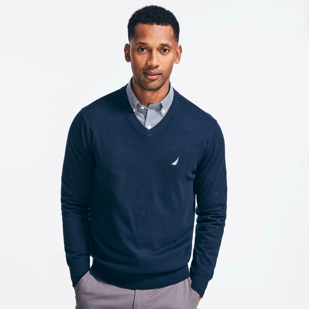 This V-neck sweater is made from temperature-controlled, active-stretch fabric that helps regulate body heat and moves with you throughout the day. From our Navtech collection, it is the perfect sweater for lifes daily adventures. From the Navtech collection. Temp control fabric helps regulate body heat throughout the day. Active stretch fabric moves with you for a comfortable fit. 60% cotton, 40% polyester Classic fit. V-neck. Ribbed collar. Long sleeves. Ribbed cuffs and hem.