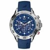 Choose your style with this Pacific Beach watch box set. Its updated design features a 44 mm stainless steel case with a simple, elegant dial that features one of our signature-style flags, three-hand movement, and date window at 6 o’clock. The bi-colored top ring matches either color of the logo-embossed silicone straps. 50% stainless steel, 50% silicone 44 mm case with mineral glass crystal. Top ring. Adjustable 22×22 mm strap fits up to 8 in. wrist circumference. Buckle closure. Water-resistant up to 100m (330ft).