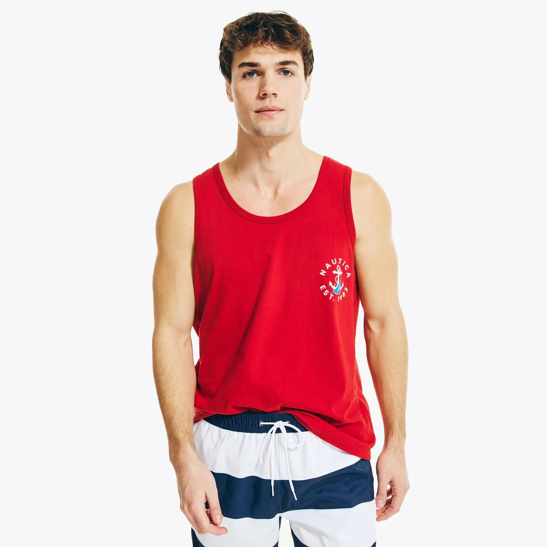 Cut from soft cotton-jersey, this classic fit tank features an anchor logo at the front and large matching graphic at the back. 100% cotton. Crew neck. Ribbed collar. Sleeveless. Ribbed. Classic fit. Machine wash. Imported.