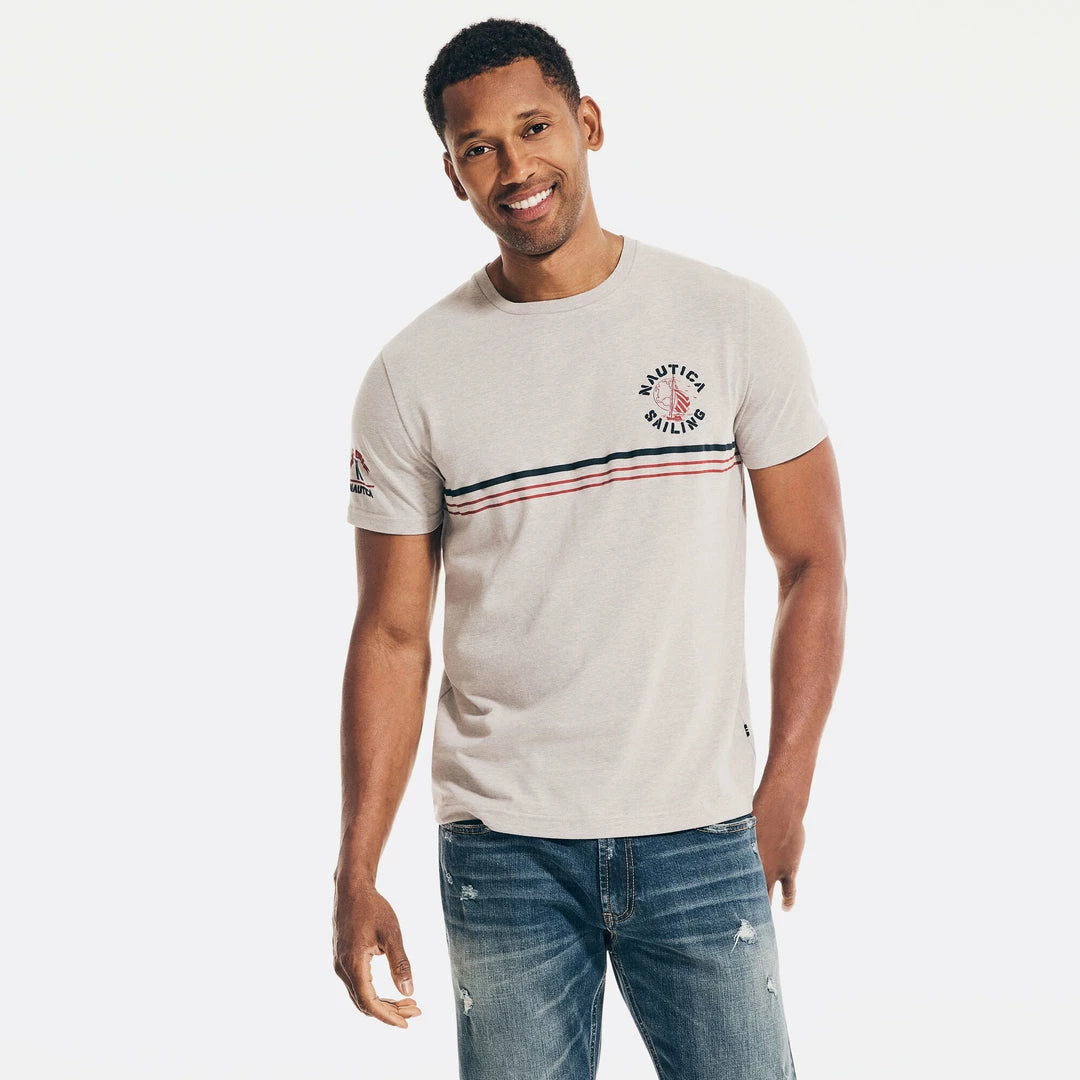 Slip on this chest-stripe graphic t-shirt for a lowkey day of lounging or a catch-up with friends. Cut for a relaxed fit, it’s made from soft, Sustainably Crafted cotton-jersey, and features our iconic sailing graphic at the front. From the Sustainably Crafted collection. 60% cotton, 40% Repreve recycled polyester. Crewneck. Ribbed collar. Short sleeves. Machine wash. Imported.