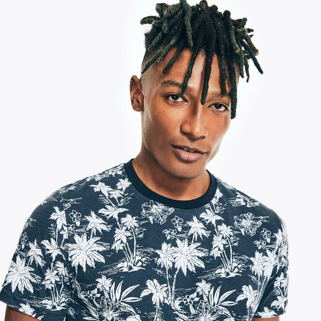Made from soft, breathable cotton and recycled-jersey knit fabric, this wear-everywhere t-shirt features an all-over tropical palm tree print perfect for your off-duty days. From the Sustainably Crafted collection. 60% cotton, 40% Repreve polyester Crew neck. Ribbed collar. Short sleeves. Classic fit. Machine wash. Imported.