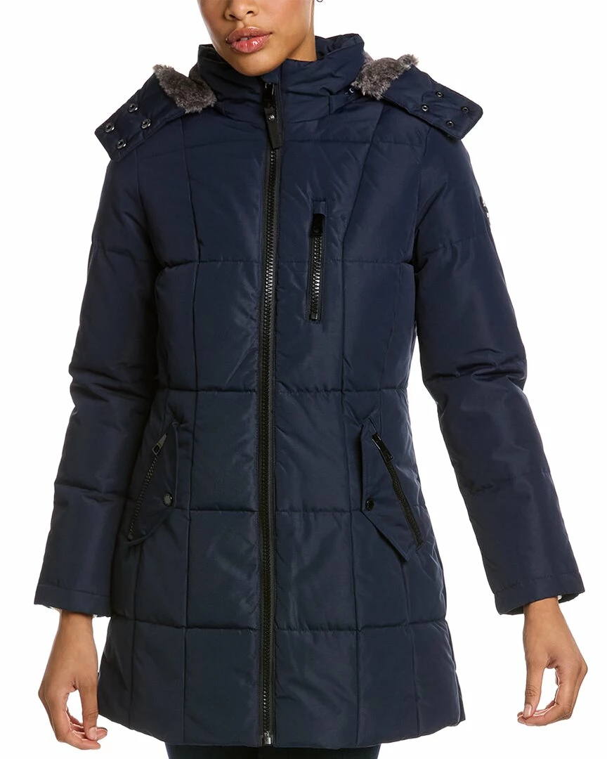 - Design Details – Quilted Design, Mock Neck, Removable Hood, Faux Fur Trim, Zip Left Chest Pocket, And Dual Front Zip Pockets