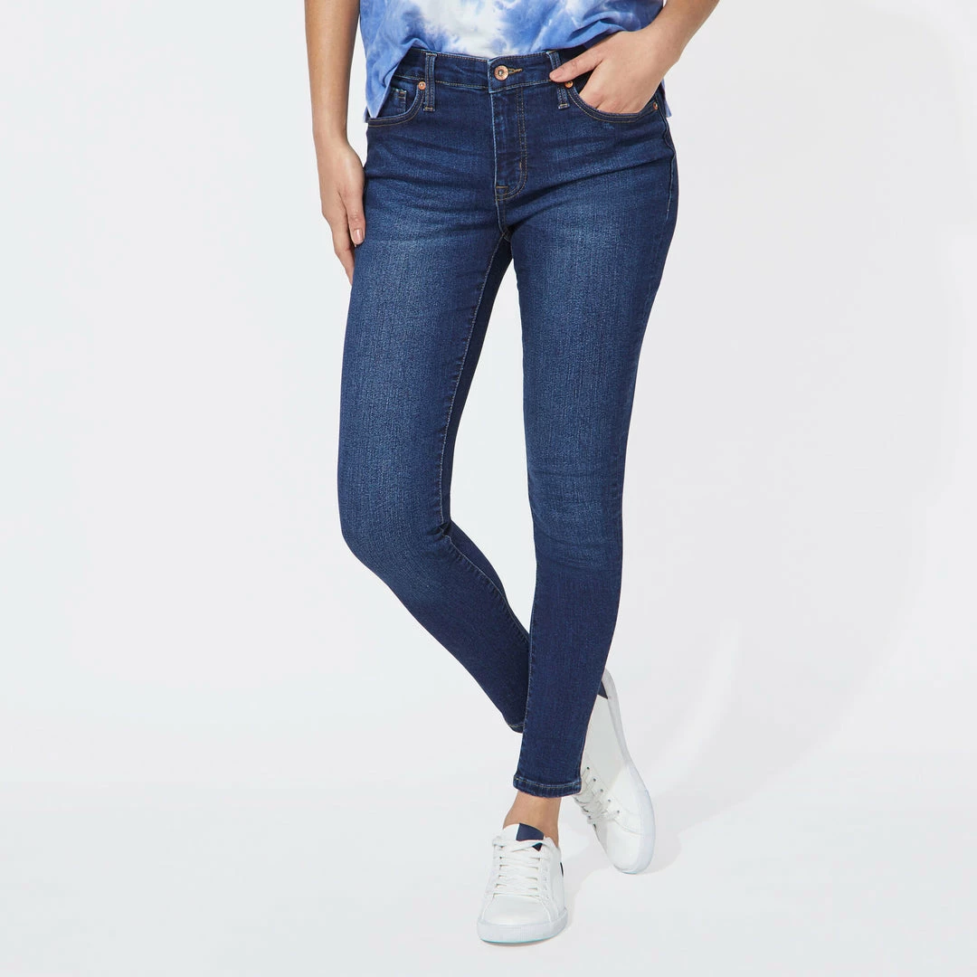 Perfectly dyed in rich indigo blue, these mid rise skinny jeans feature a slim, tappered leg and rise just above the hips. A hint of stretch and super soft denim means they’re both functional and flattering. Imported 77% COTTON, 21% POLYESTER, 2% ELASTANE. Part of our Nautica Jeans Co. collection. Mid rise, hits above the hips. Skinny fit leg and 5-pocket styling. Machine wash.