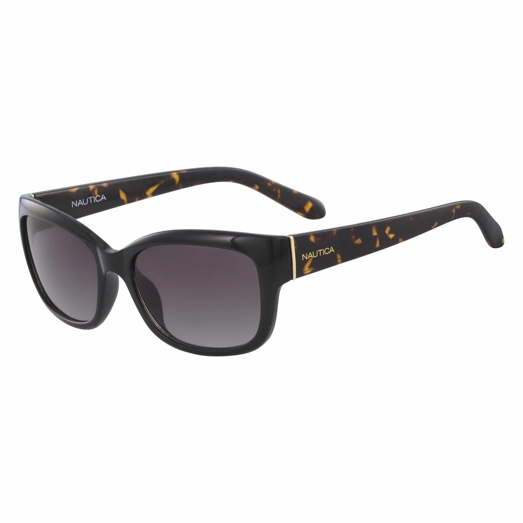 Cool gradient lenses and tortoise temples reinvent this classic rectangular silhouettethe perfect accessory for a sunny day in the city. Black plastic rectangular frame with tortoise temples Smoke gradient polarized lenses, UV protection. Keyhole nose bridge. Wipe clean. Imported.
